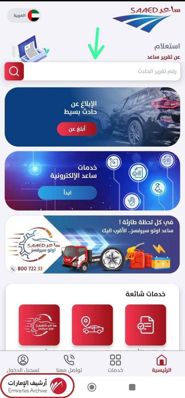 - إدخال رقم تقرير الحادث في شريط البحث.