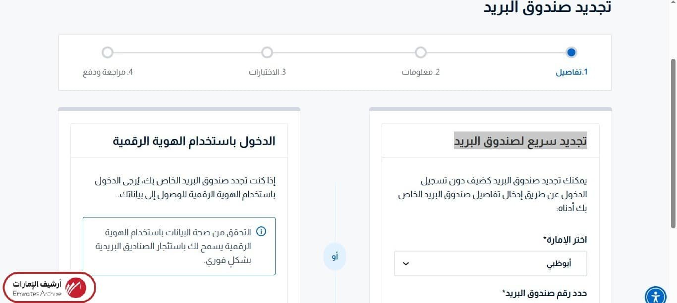 - الانتقال إلى صفحة تجديد صندوق البريد عبر موقع بريد الإمارات.