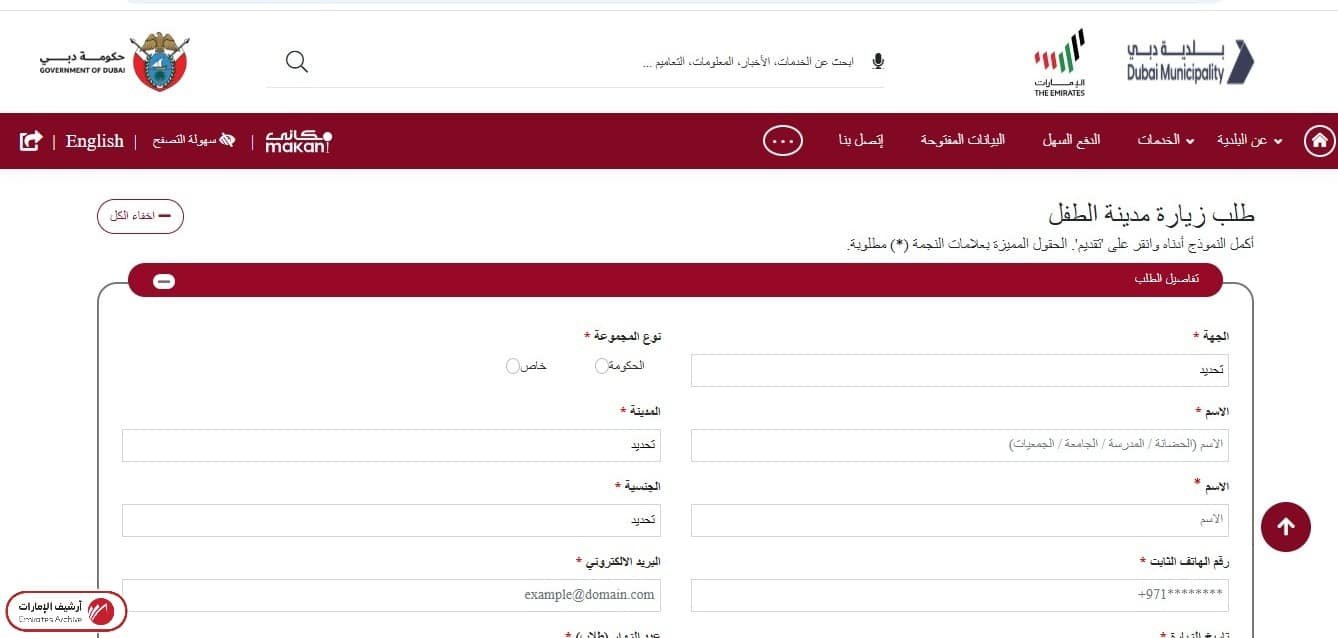- تعبئة بيانات نموذج طلب زيارة مدينة الطفل وفق الآتي: