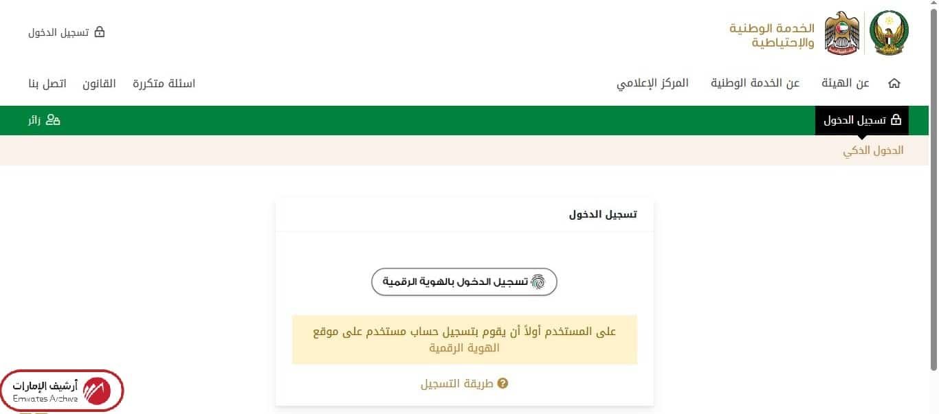 - الانتقال إلى موقع الخدمة الوطنية والاحتياطية الإلكتروني.