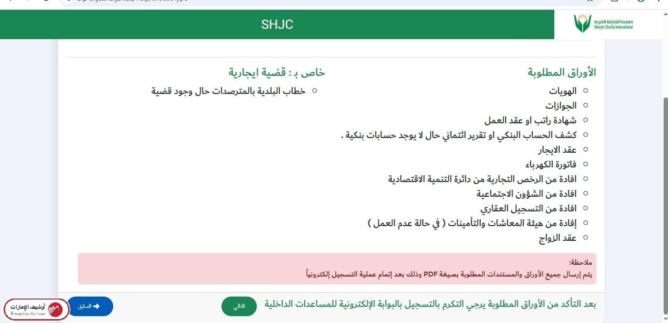 جمعية الشارقة الخيرية الأوراق المطلوبة